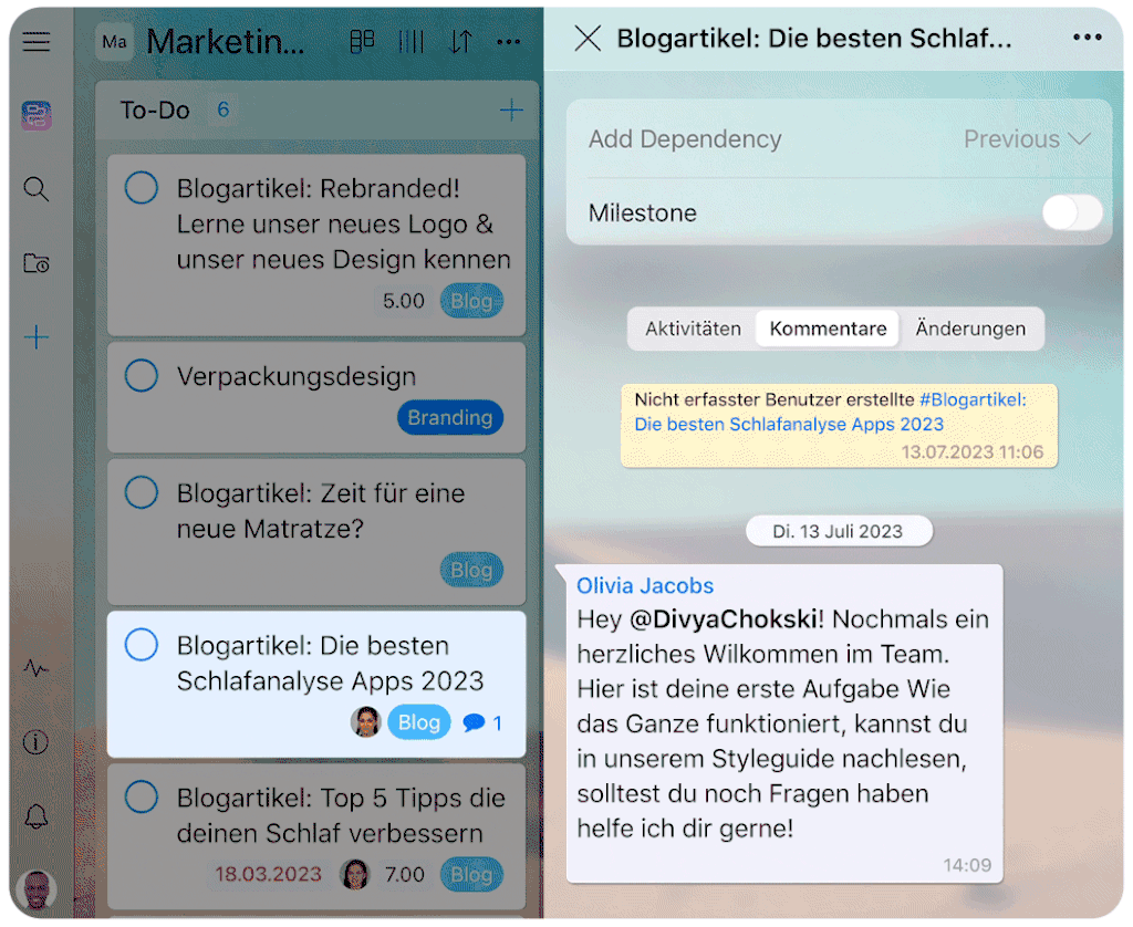 - Kommunizieren Sie mit Ihrem Team wie in einem Chat direkt in den Aufgaben.